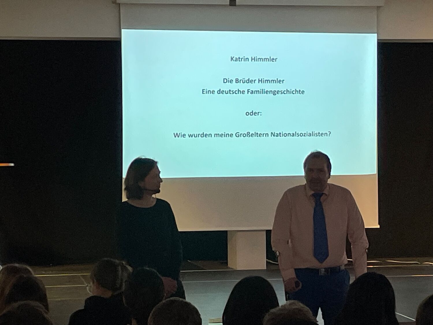 Die anschließende Fragerunde zeigte, wie sehr das Thema die Schüler bewegte. Viele nutzten die Gelegenheit, um Frau Himmler nach ihrem persönlichen Umgang mit ihrer Familiengeschichte zu fragen. Sie beantwortete alle Fragen sehr offen und ermutigte die Jugendlichen, sich kritisch mit Geschichte auseinanderzusetzen und – gerade in der aktuellen politischen Situation - Verantwortung für eine demokratische Gesellschaft zu übernehmen.