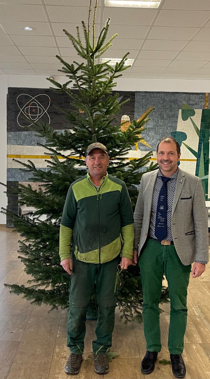 Der Christbaum für die Staatliche Realschule Ergolding wurde von der Firma Brennholz Huber geliefert. Der Chef der Firma, Herr Georg Huber, ließ es sich nicht nehmen, den Baum persönlich an der Realschule vorbeizubringen. Dieser wurde im Anschluss von Schülerinnen und Schülern gemeinsam mit unserem Hausmeister Herrn Paintner festlich geschmückt, um so in der Adventszeit auch die Schule auf die festliche und besinnliche Zeit einzustimmen. Herr Köppl freute sich über das schöne Exemplar und bedankte sich bei Herrn Huber. So kann auch an der Schule die „stade Zeit“, wenigstens optisch beginnen, denn vor den Ferien mussten noch so manche Leistungsnachweise abgelegt werden.