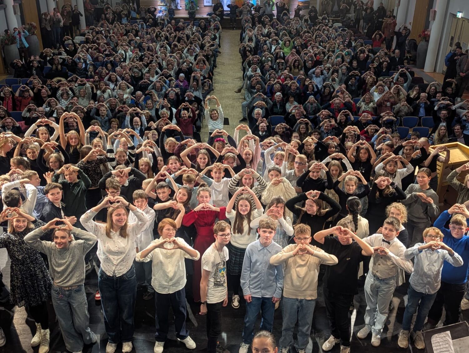 Ein besonderer Höhepunkt war der Auftritt des wohl größten Chors Niederbayerns: Alle Schülerinnen und Schüler der 5. und 6. Klassen standen gemeinsam auf der Bühne und beeindruckten mit einem harmonischen, kraftvollen Klang. Auch der Lehrerchor begeisterte erneut mit drei gefühlvoll vorgetragenen Liedern und bewies, dass die gesamte Schulfamilie musikalisch auf höchstem Niveau zusammenwirkt.