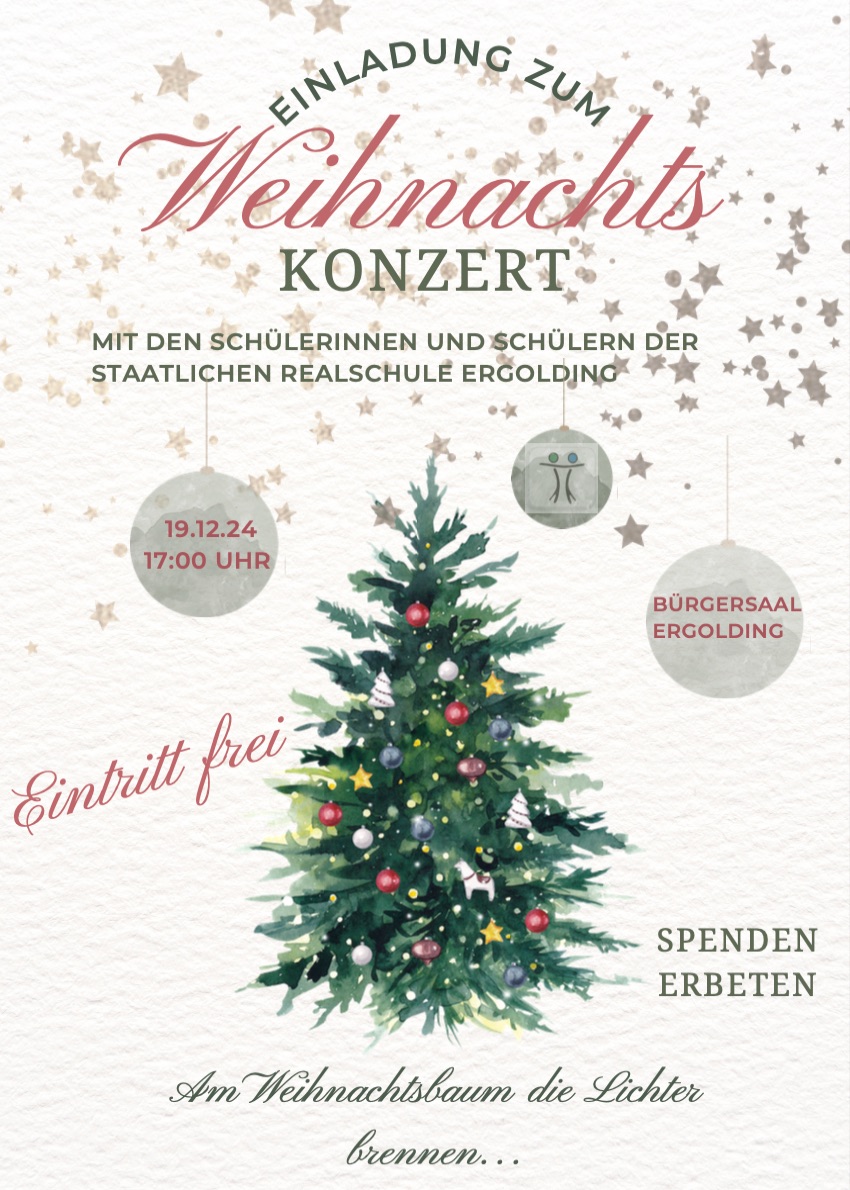 Die Schulfamilie der Realschule Ergolding wünscht allen Gästen nicht nur frohe Weihnachten, sondern auch einen zuversichtlichen Blick auf das kommende Jahr. „Bleiben Sie gesund und genießen Sie die Festtage im Kreise Ihrer Liebsten“, schloss der Schulleiter seine Rede mit einem Lächeln und der Hoffnung, dass das neue Jahr mit Freude und Vertrauen beginnt.