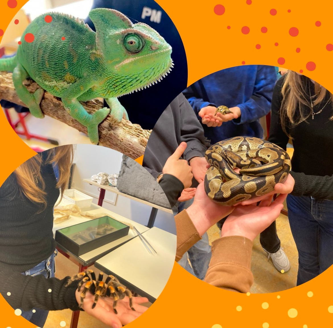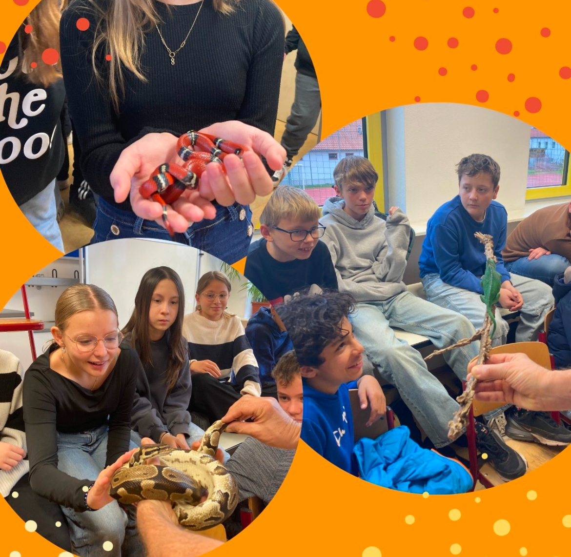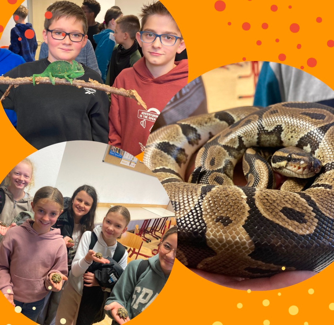 Wie jedes Jahr fand auch heuer wieder unser Reptilientag für die 6. Klassen statt! Dabei konnten die Schüler nicht nur sehr viel Wissenswertes und Spannendes über Schlangen, Schildkröten bis hin zu Chamäleons erfahren, sondern diese auch ganz nah kommen und sie sogar anfassen!